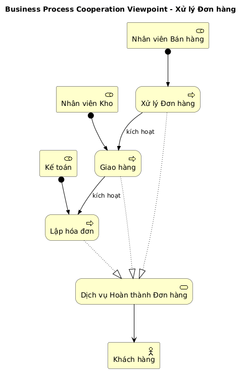 Ví dụ: Một Góc nhìn Hợp tác Quy trình Kinh doanh (Business Process Cooperation Viewpoint) có thể được sử dụng để minh họa cách các quy trình kinh doanh tương tác với nhau để cung cấp một dịch vụ cho khách hàng.